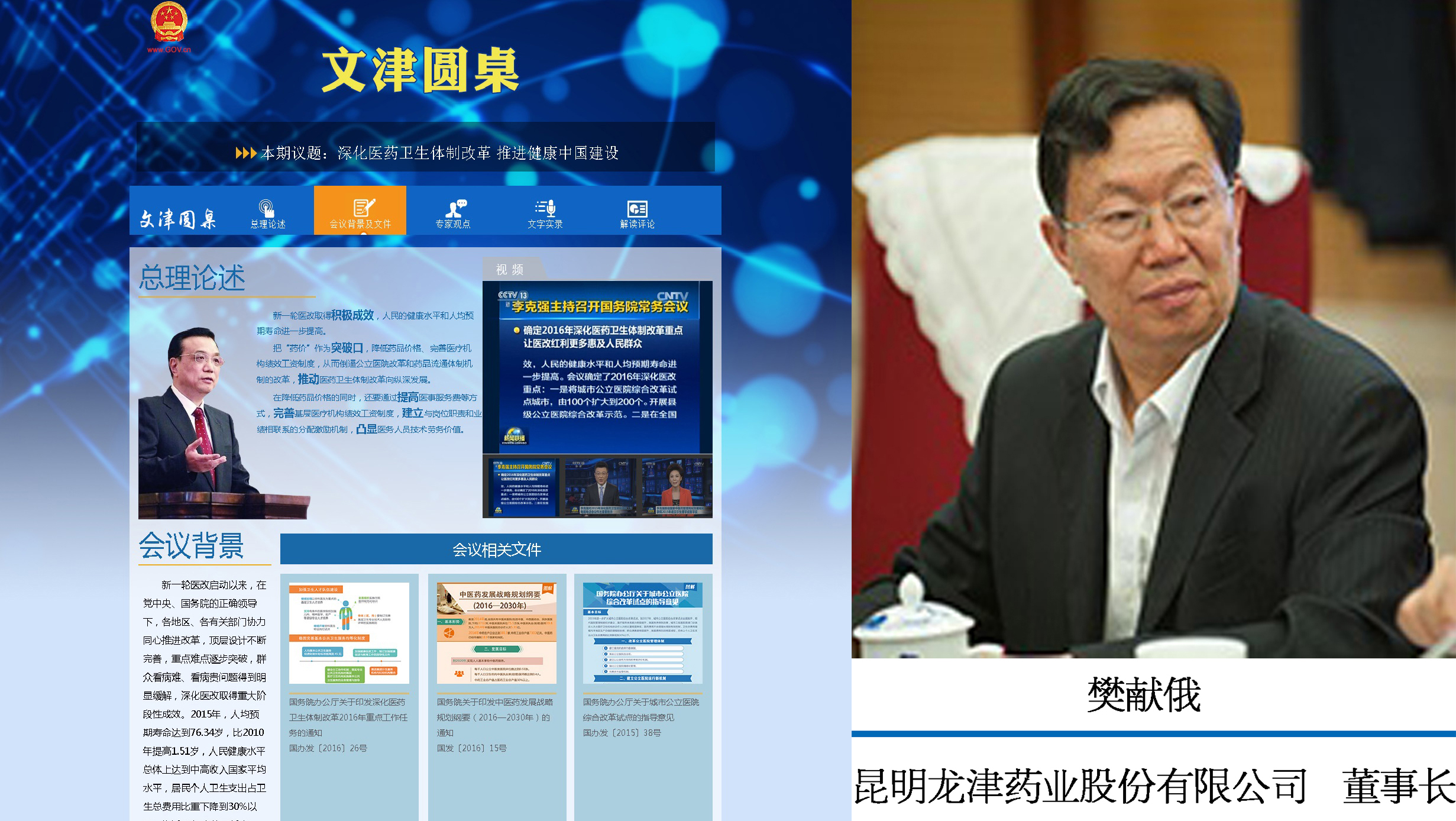 WilliamHill官方网站董事长樊献俄加入中国政府网2016年05月26日举行的闭门圆桌聚会并叙述了“药品质量及羁系”的精炼看法。